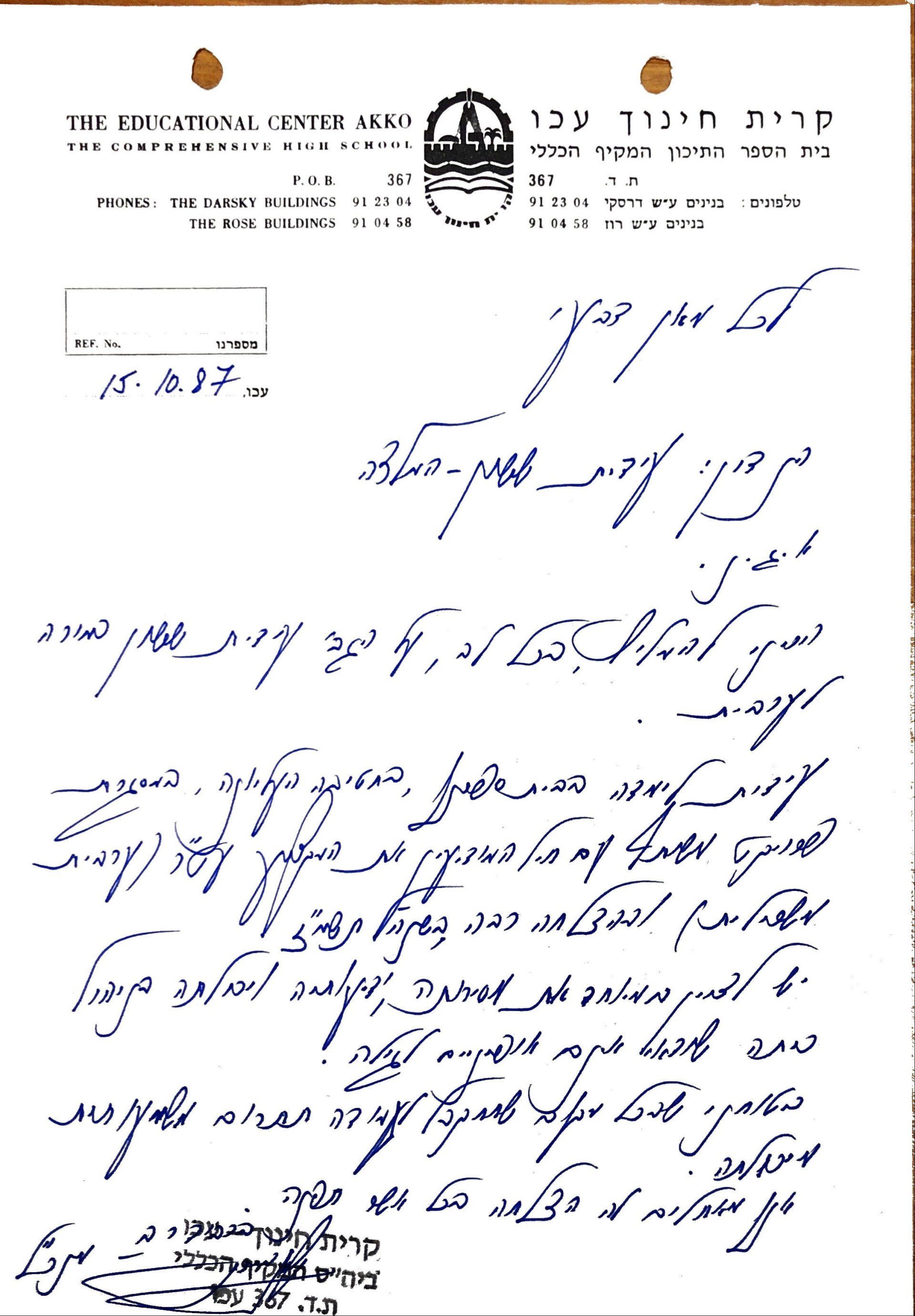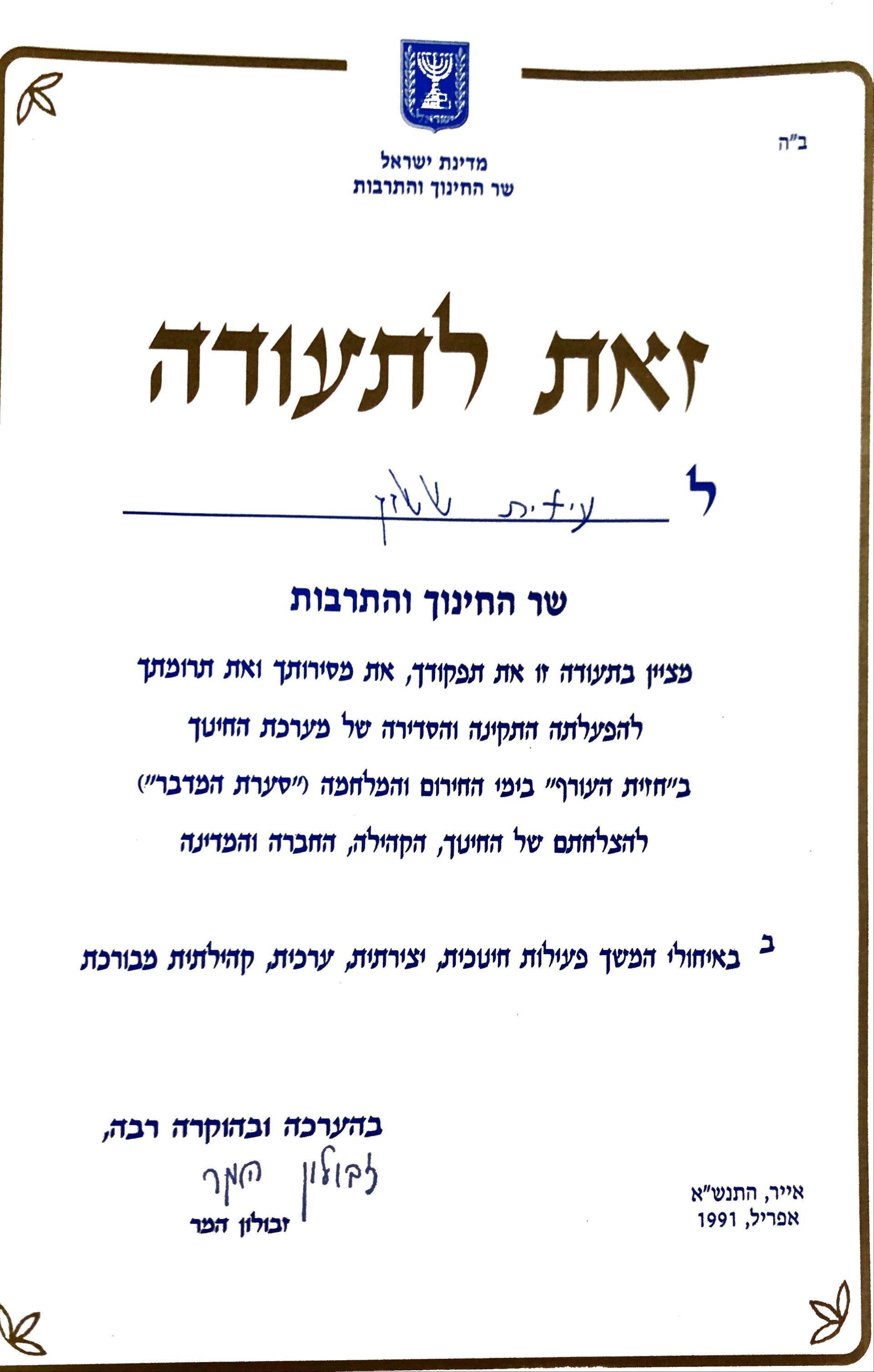 מבקש להביע תודה והערכה ענקית !! על התקופה הנפלאה שבה שימשת כרכזת המחוז שבו אני מלמד.