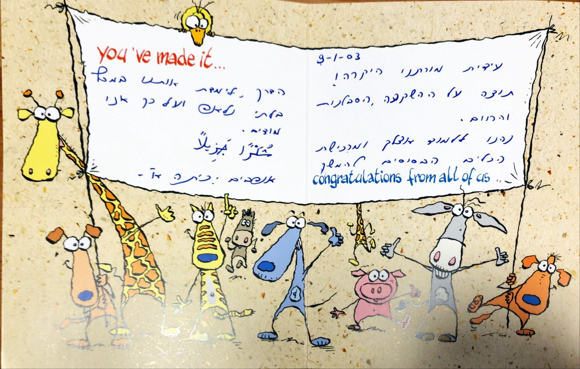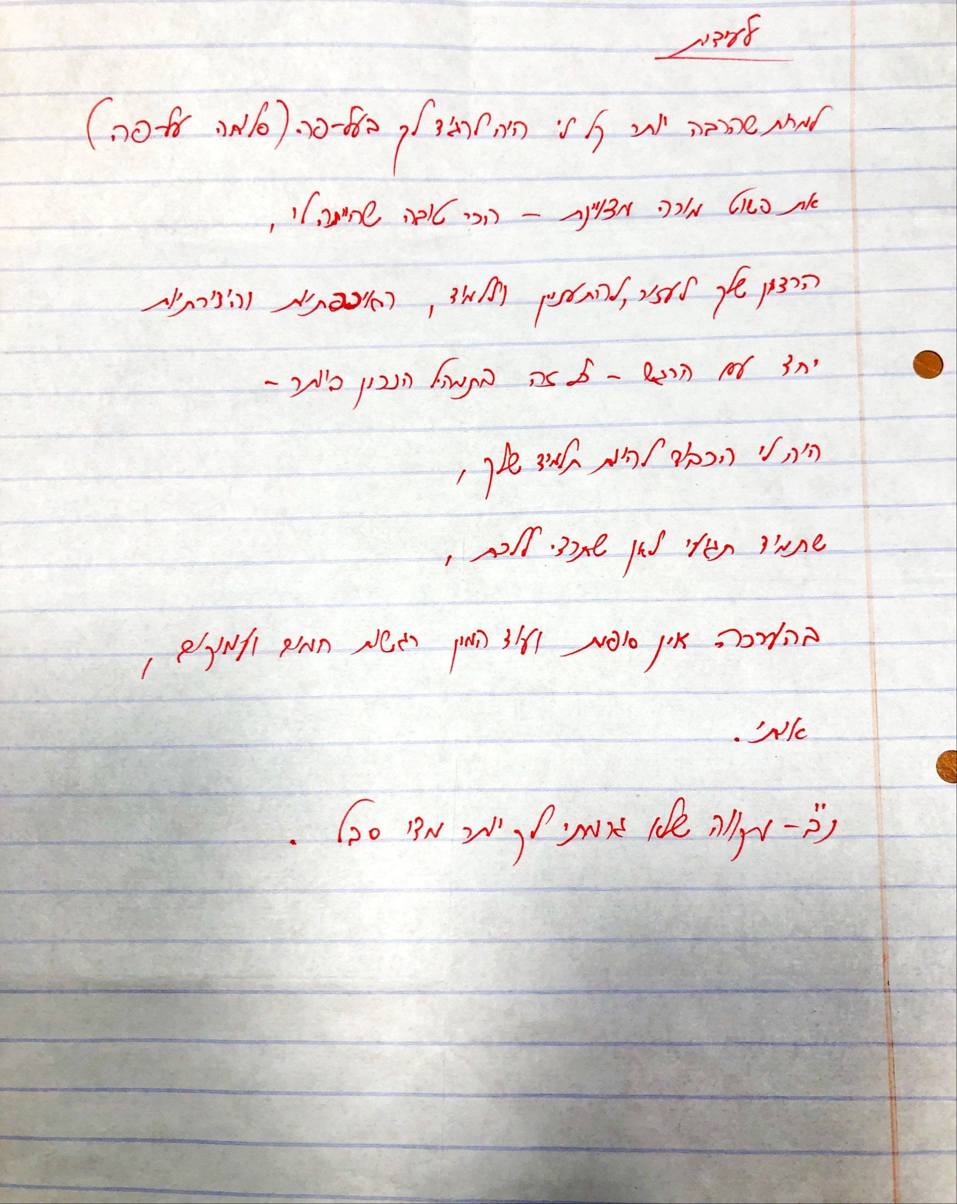 "היית מורה נפלאה, מקווה לראותך שוב בעתיד אולי כקולגה או כמרצה. היה ממש כיף. "