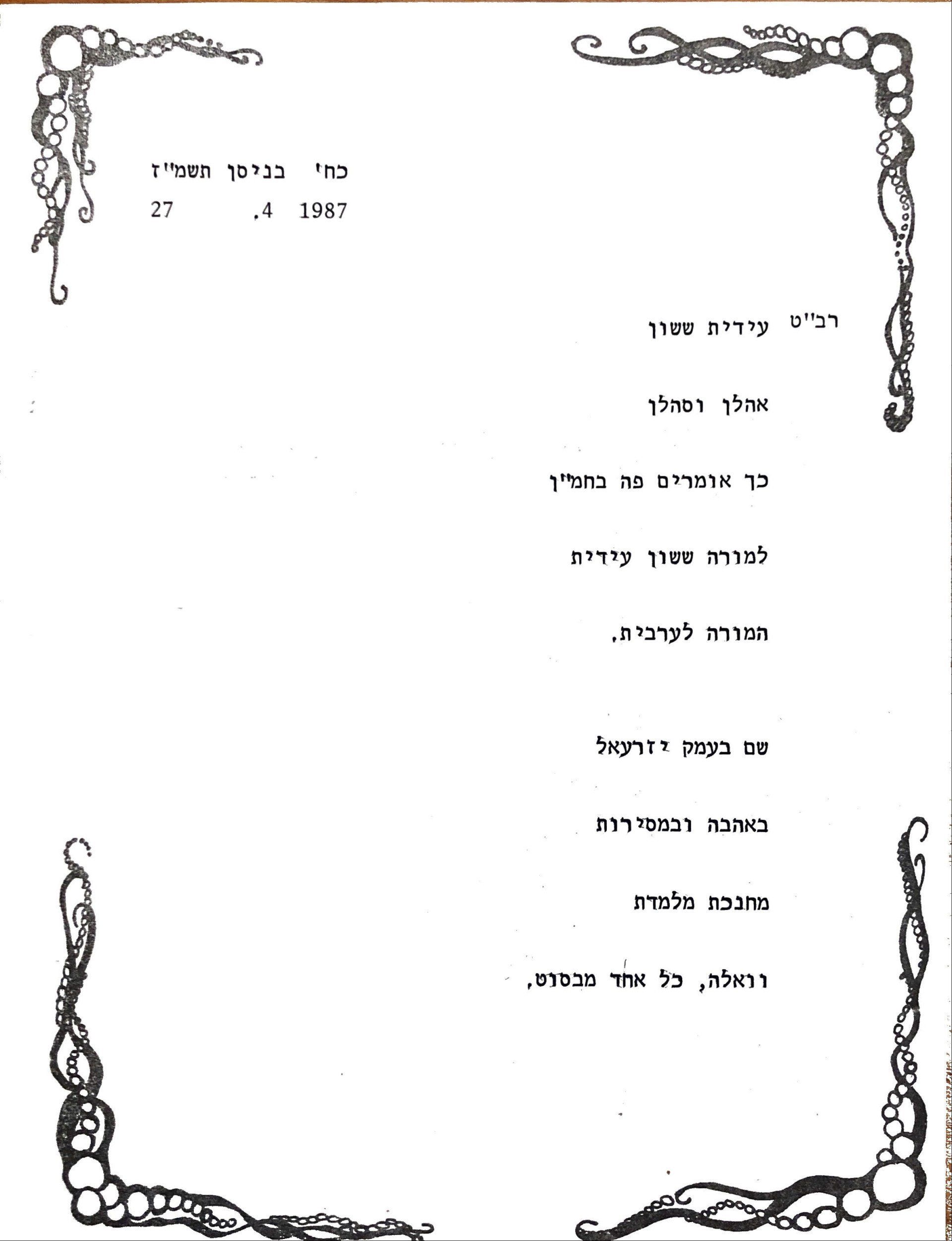 הכרותי עם עידית החלה במסגרת היותנו מדריכות מחוזיות לערבית – היא במחוז ירושלים ואני במחוז הצפון.